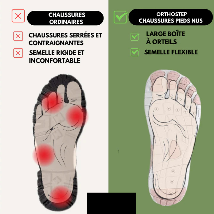 ✓ Polyvalence au quotidien – Légères et respirantes, les chaussures minimalistes Orthostep s’adaptent à tous les usages : travail, loisirs ou activités extérieures, tout en apportant confort et soutien thérapeutique.