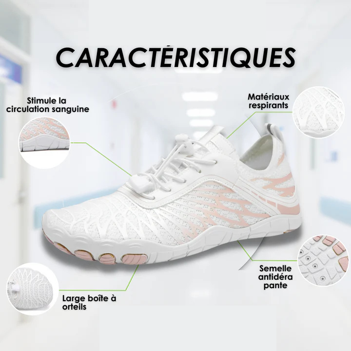 ✓ Large boîte à orteils – Offrez à vos orteils un espace de liberté pour bouger et s’étendre naturellement, favorisant force, souplesse et confort au quotidien.